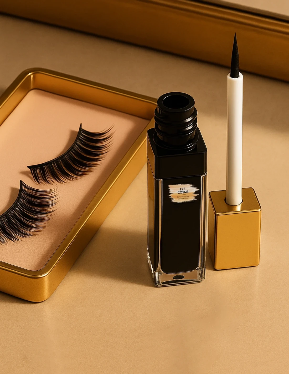 Pose les faux cils au ras de ta paupière, en ajustant la position avec une pince si besoin.