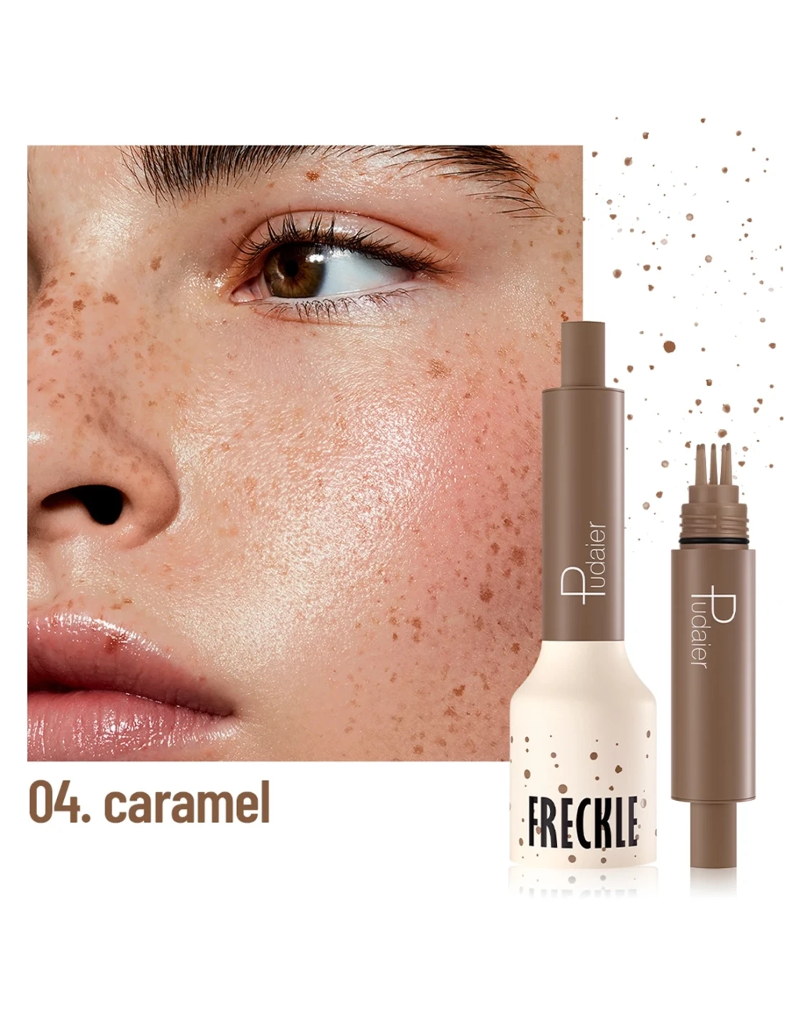Ce stylo innovant est conçu pour créer des taches de rousseur réalistes en quelques secondes. Son applicateur unique à cinq pointes délivre instantanément des taches naturelles en une seule pression. Finis les longs tracés au crayon : la base « tampon » imprime cinq points à la fois, reproduisant la dispersion aléatoire des vraies taches et évitant le look artificiel.