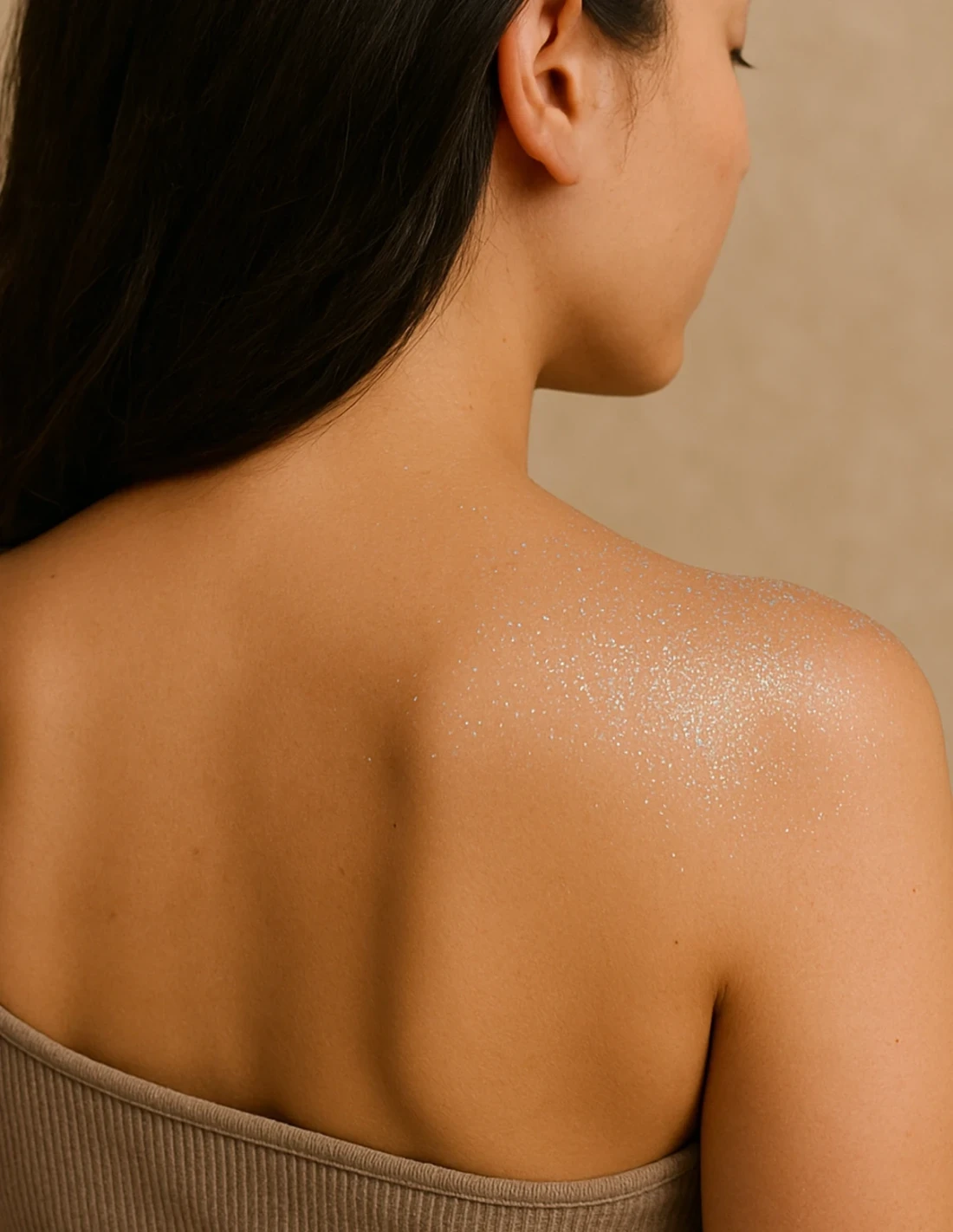 Polyvalence : Les brumes pailletées sont souvent conçues pour être polyvalentes, ce qui signifie qu'elles peuvent être appliquées non seulement sur la peau, mais aussi sur les vêtements. Cela vous donne la liberté d'expérimenter et de créer des looks uniques en utilisant la même brume pour ajouter de l'éclat à votre peau et à vos vêtements.