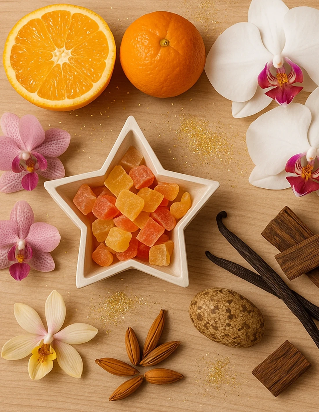 Un mélange sophistiqué et ensoleillé qui éveille les sens. L’ouverture fruitée et florale laisse place à un cœur exotique, avant de fondre sur un sillage boisé et crémeux à la vanille douce et au musc chaud.