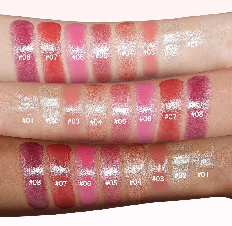 Il existe **8 teintes vibrantes**, adaptées à tous les goûts et *carnations*, avec des **finitions lumineuses**.