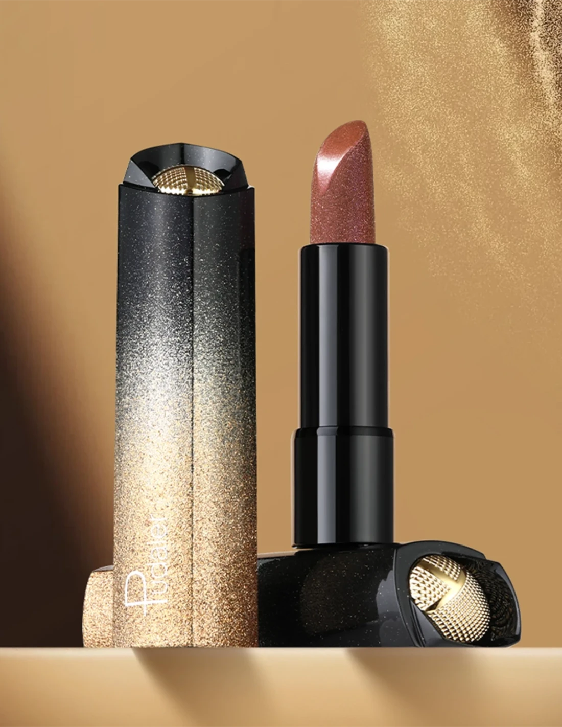 Un rouge à lèvres brillant au fini nacré et scintillant
