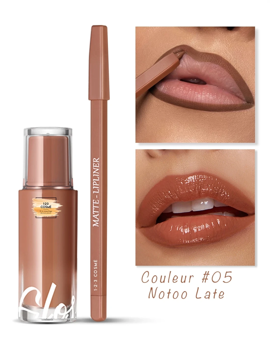 Pourquoi choisir le Combo à lèvres Glossy Nude – No TooLate ?