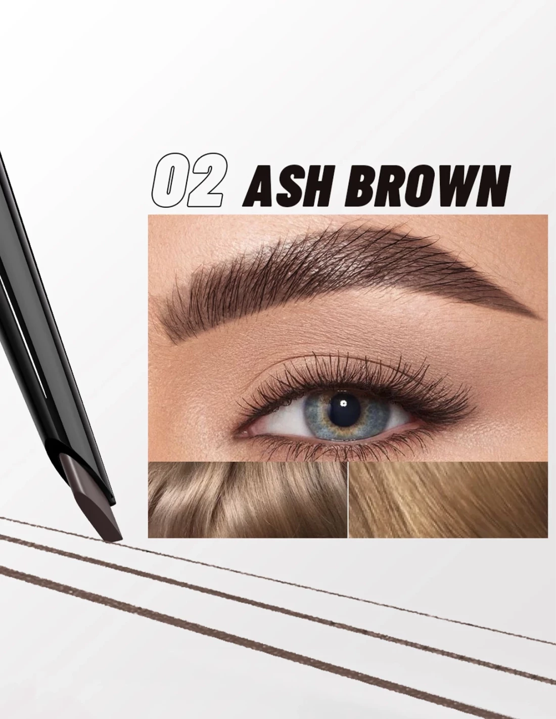 Dessine, comble et structure tes sourcils en un geste avec notre crayon à sourcils waterproof longue durée. Sa pointe plate biseautée 21,5° te permet de créer un effet poil à poil ultra fin (0,01 mm), des lignes nettes (0,03 mm) ou de remplir rapidement (3 mm). Résultat : des sourcils naturels, définis, sans bavure. Goupillon intégré pour fondre la matière et un rendu parfait. Disponible en 6 teintes (Ash Black, Ash Brown, Deep Taupe, Light Brunette, Deep Brown, Warm Brown).