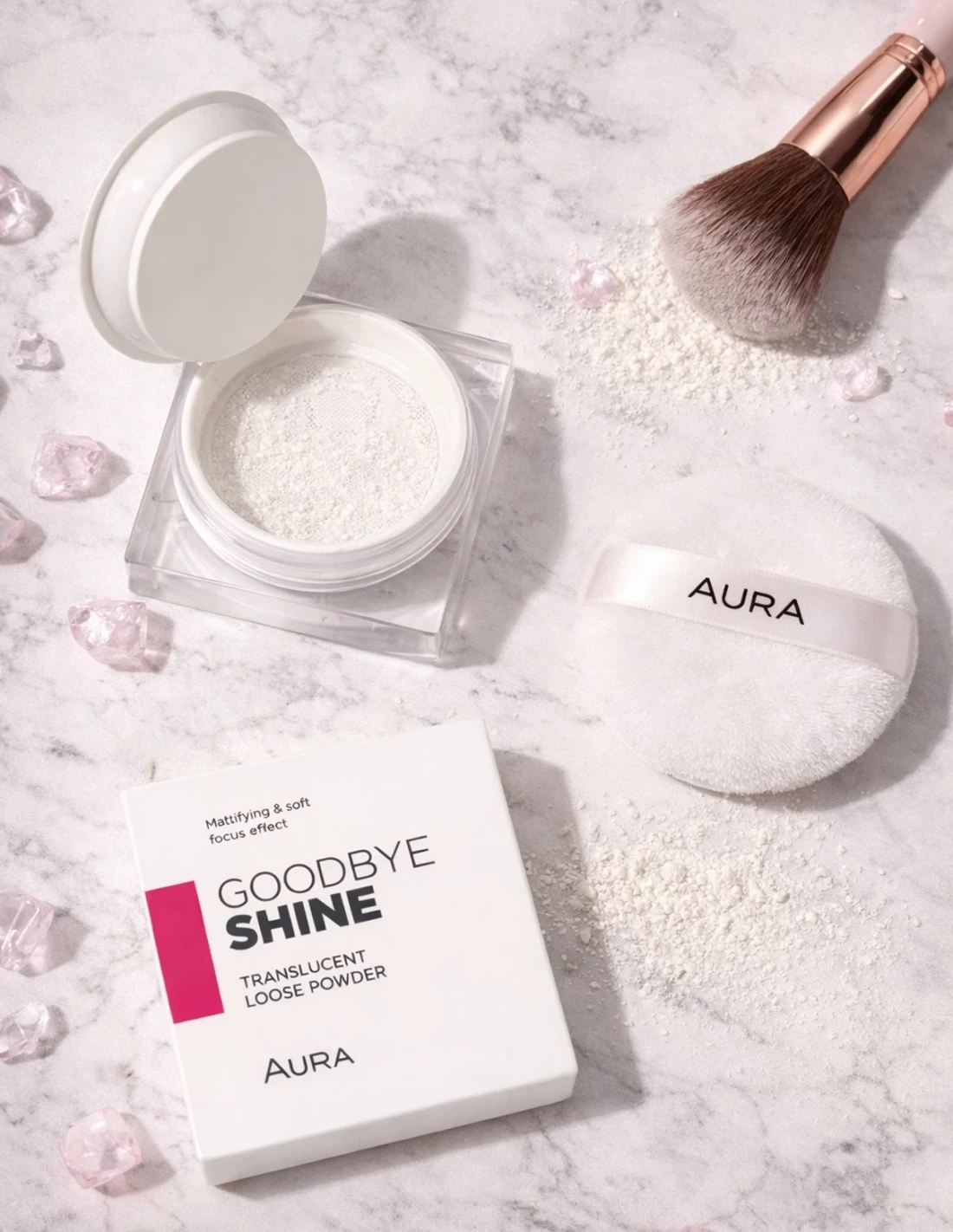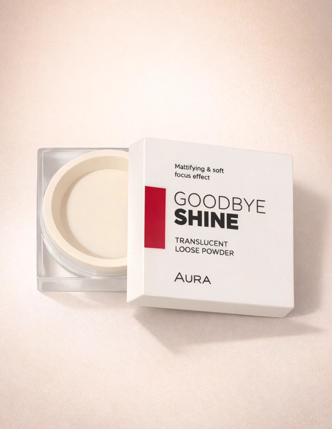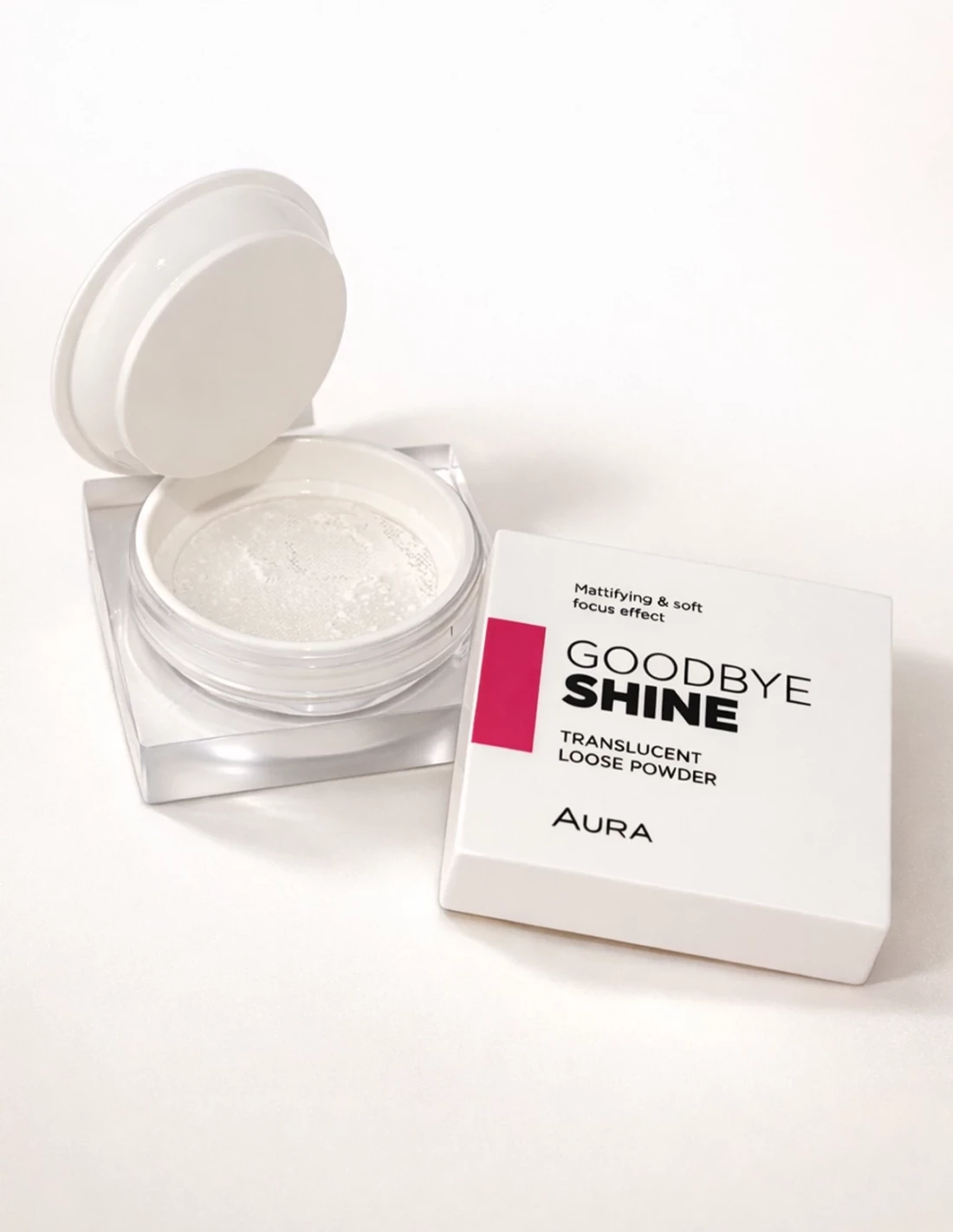 Envie d’un teint qui reste propre, lissé et sans brillance du matin au soir ? La poudre libre AURA Goodbye Shine est la touche finale qui transforme instantanément le rendu du maquillage. Sa texture ultra fine dépose un voile léger qui fixe le fond de teint, améliore la tenue de l’anti-cernes et apporte un effet soft focus très flatteur. C’est une poudre libre translucide idéale au quotidien, mais aussi une excellente poudre baking pour un résultat encore plus net et longue tenue.